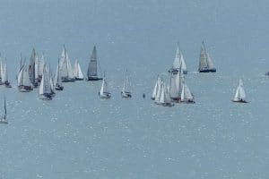 Elrajtolt az 54. Kékszalag Raiffeisen Nagydíj mezőnye csütörtök reggel Balatonfüredről, a szervezők tájékoztatása szerint 516 hajó nevezett idén a tókerülő...