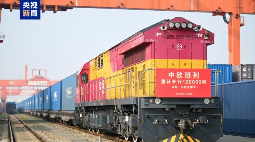 2025. november 28-án 12:13-kor, amikor a lengyelországi Malaszewicze felé tartó X8086 Kína–Európa tehervonat elindult a kínai Chengdu nemzetközi vasútállomásról, a Kína–Európa tehervonat-szolgáltatás 120 ezer utat teljesített, a szállított áruk összértéke pedig meghaladta a 490 milliárd dollárt. A Kína–Európa tehervonatok magas színvonalú fejlesztése új mérföldköveket ért el, márkaértéke pedig globális elismertségre tett szert.
