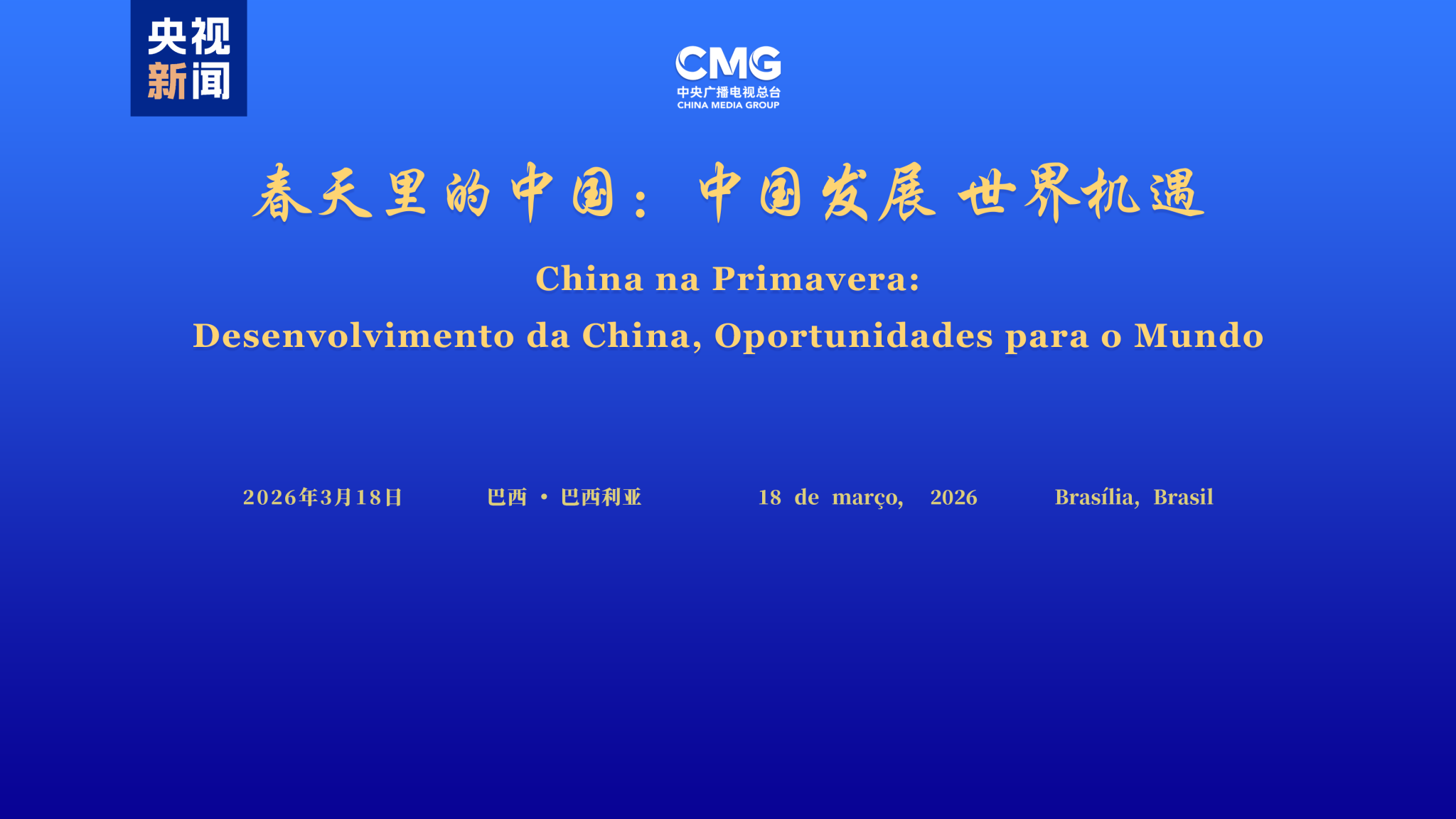 Helyi idő szerint március 18-án Brazíliavárosban megtartották a China Media Group (CMG) által rendezett „Kínai tavasz: lehetőségek megosztása a világgal” című globális párbeszéd rendkívüli, brazíliai ülését.
